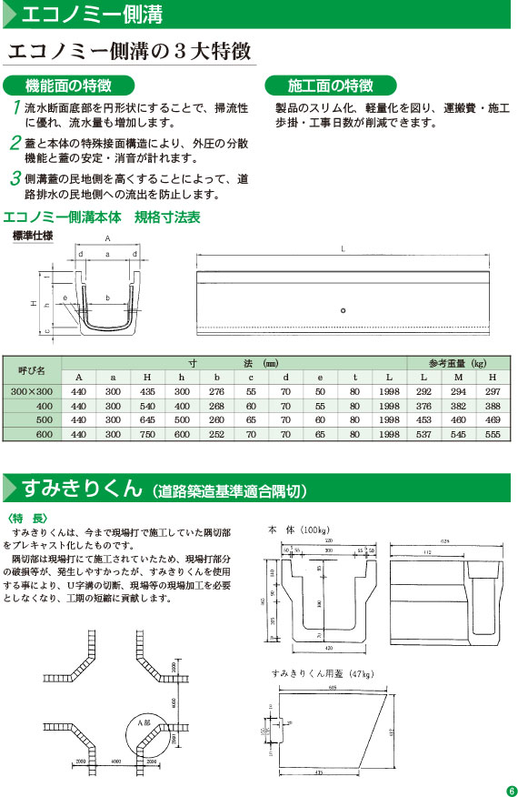 エコノミー側溝 / すみきりくん(道路築造基準適合隅切)