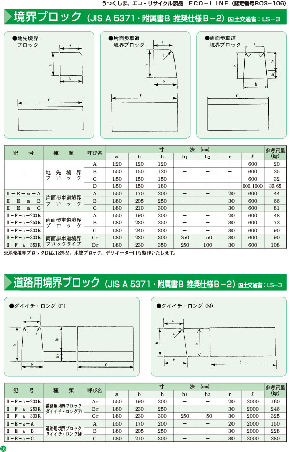 環境に優しいダイイチECOシリーズ新製品のご案内道路用コンクリート製品ブロック・L形擁壁製品農業土木用製品下水道用製品その他の製品